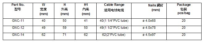 ■ 弹性大、耐重击、绝不破裂 ■ 双钉式设计增强附著力,坚固不脱落 ■ 本產品适用於大型PVC管或电缆用 ■ 材质:PE、中碳钢(钉子) ■ 灰色、其他顏色皆可订製